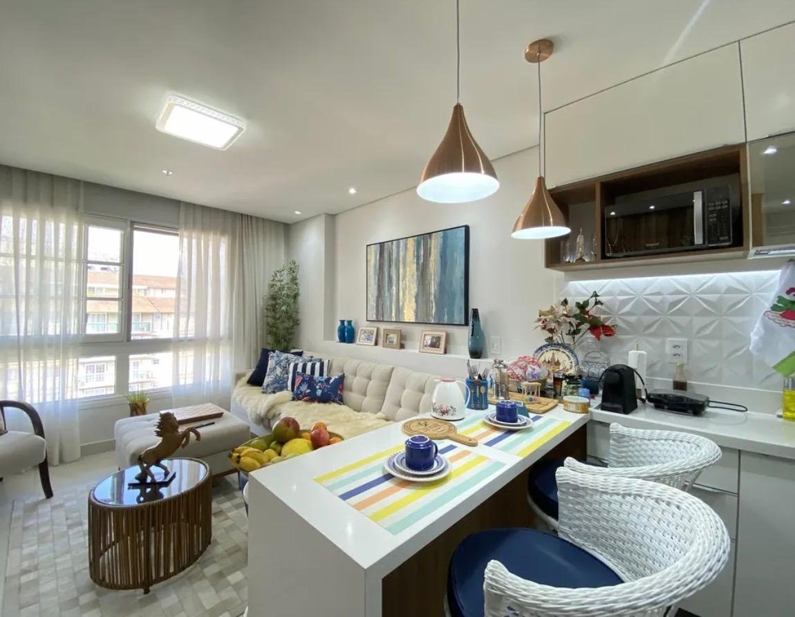 • Sala integrada à cozinha em conceito aberto